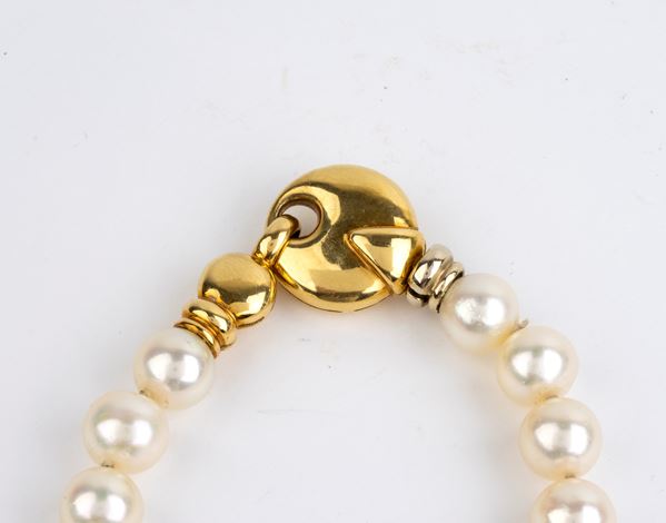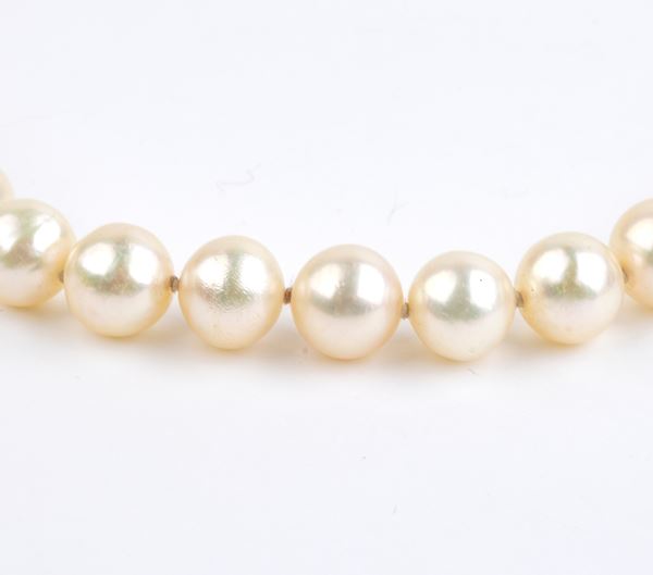 ad un filo di perle coltivate d'acqua salata, diametro 8,5 - 9 mm, chiusura a scomparsa in oro giallo 18k.