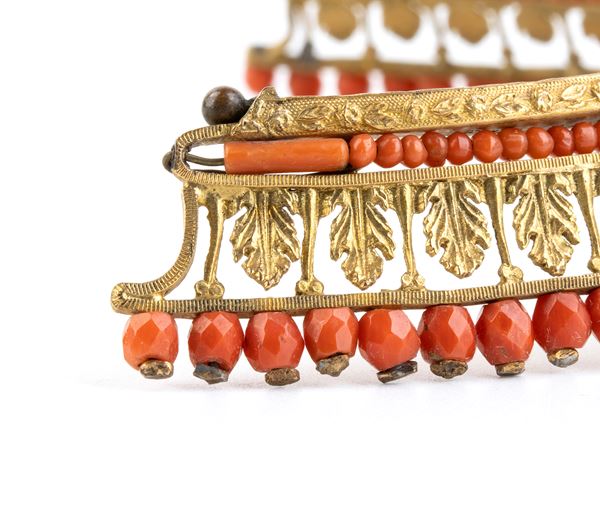 Tiara in rame dorato e corallo Mediterraneo , XIX secolo