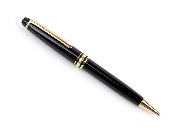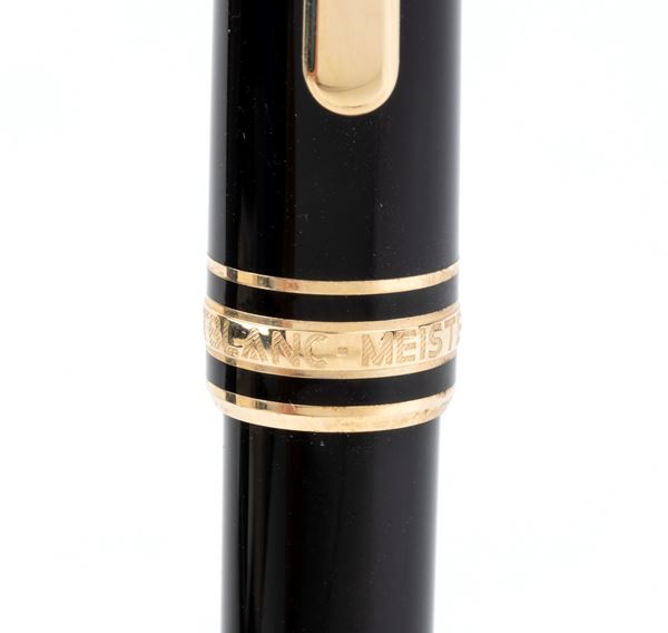 Corpo in pregiata resina nera, stella bianca Montblanc intarsiata, finiture e clip dorate. Scatola e controscatola Montblanc.