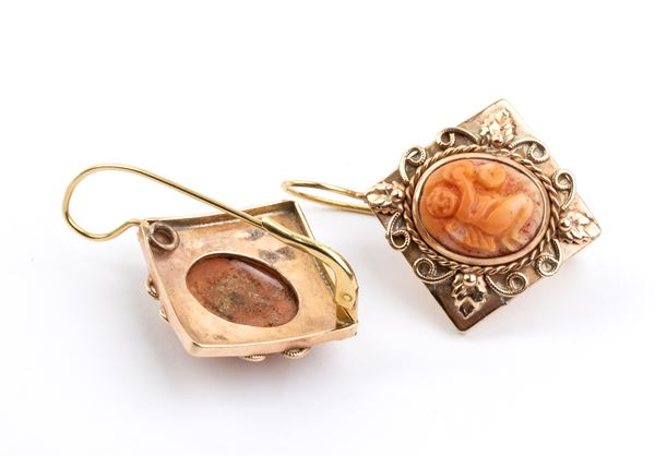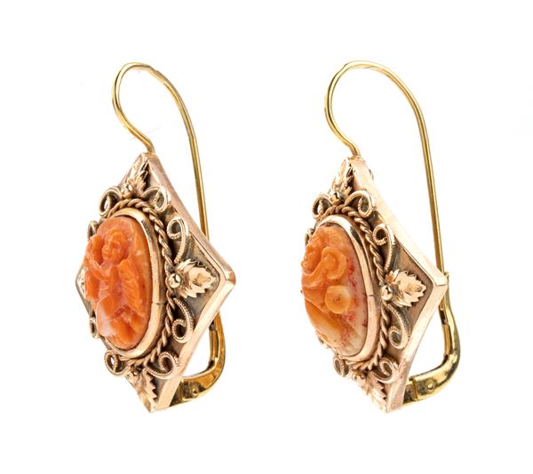 Orecchini in oro e cammei in corallo cerasuolo, XIX secolo