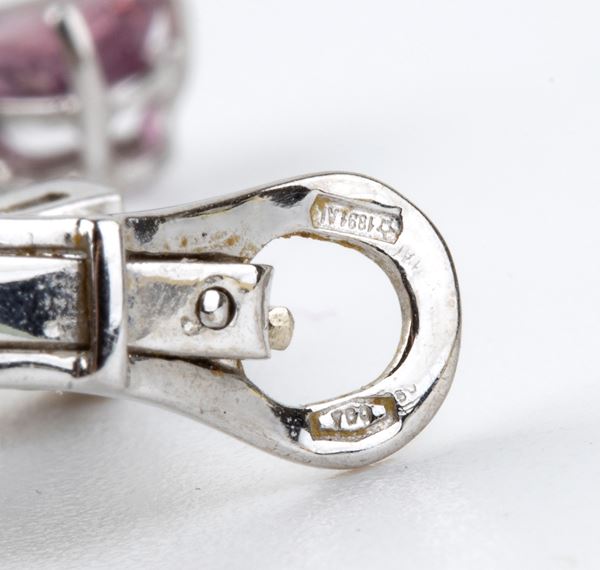in oro bianco 18k, di forma geometrica, impreziositi da rubini, zaffiri ed un pavé di diamanti.