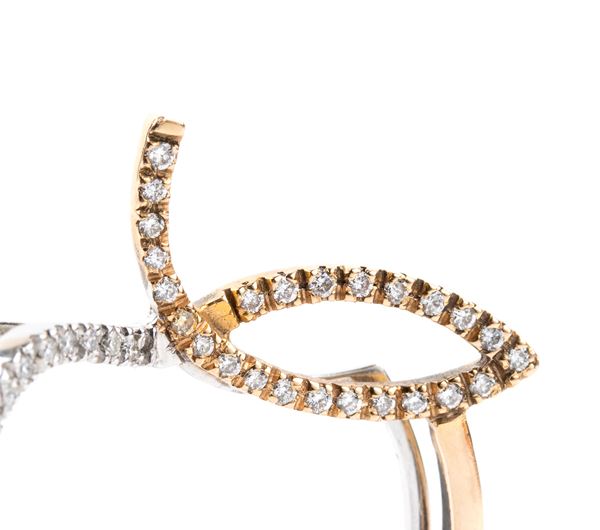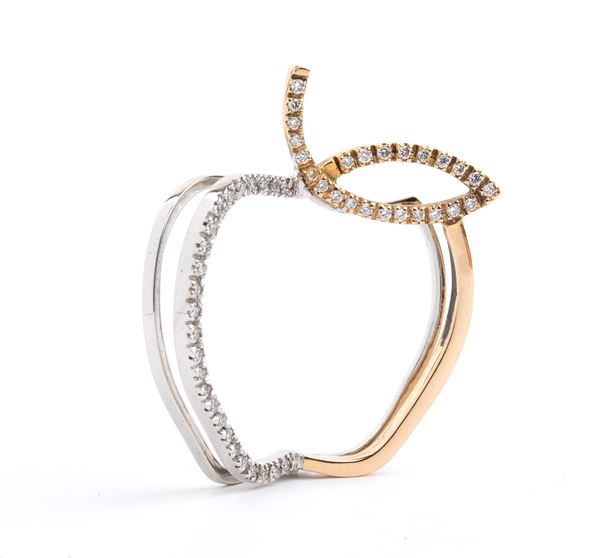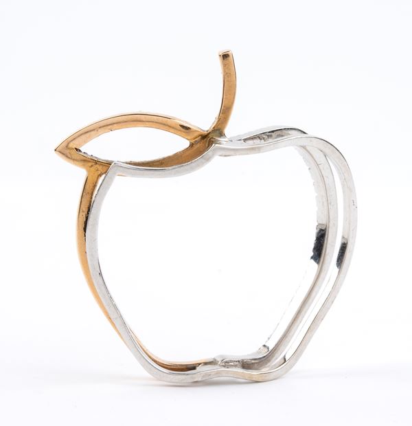 a forma di mela, impreziosito da n. 50 diamanti di forma rotonda, taglio brillante, circa 0.50 ct, H-I, VS-SI.