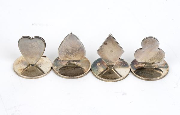 Quattro segnaposto inglesi in argento con carte da gioco, Londra 1915-1916