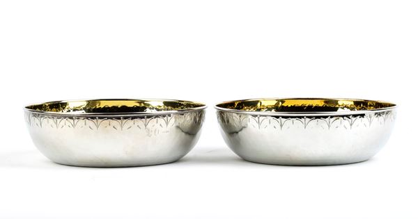 di forma circolare, interno vermeille, lavorazione a finta martellatura con motivi di foglie.
