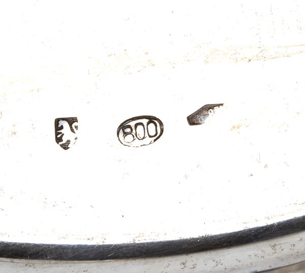 di forma circolare e con bordi sagomati. Argento 800/1000, punzonato "800".