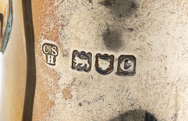corpo piriforme su base circolare. Argento 925/1000, serie completa di marchi Londra 1898-1899, argentiere Charles Stuart Harris.