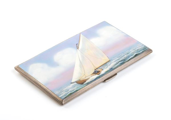 Portasigarette Art Déco inglese in argento e smalti policromi, Chester 1936-1937