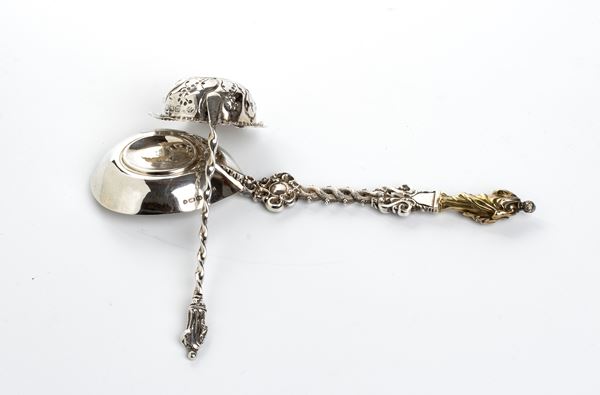 Cucchiaio e colino in argento con apostoli, Londra 1854 e 1896
