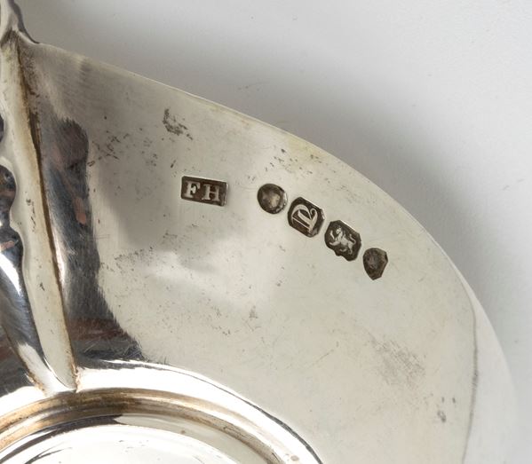 a) cucchiaio in argento 925/1000, serie completa di marchi Londra 1854-1855, argentiere Francis Higgins II.