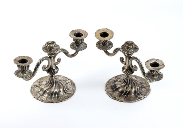 Coppia di candelabri italiani in argento, Inizio XX secolo