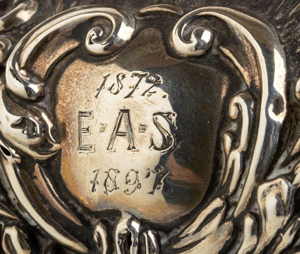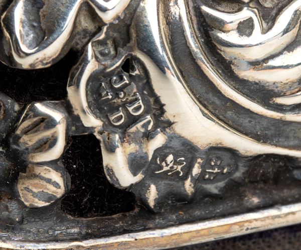 Argento 925/1000, serie completa di marchi Chester 1896-1897 e iniziali JDWD, argentieri James Deakin & Sons (John & William F Deakin).