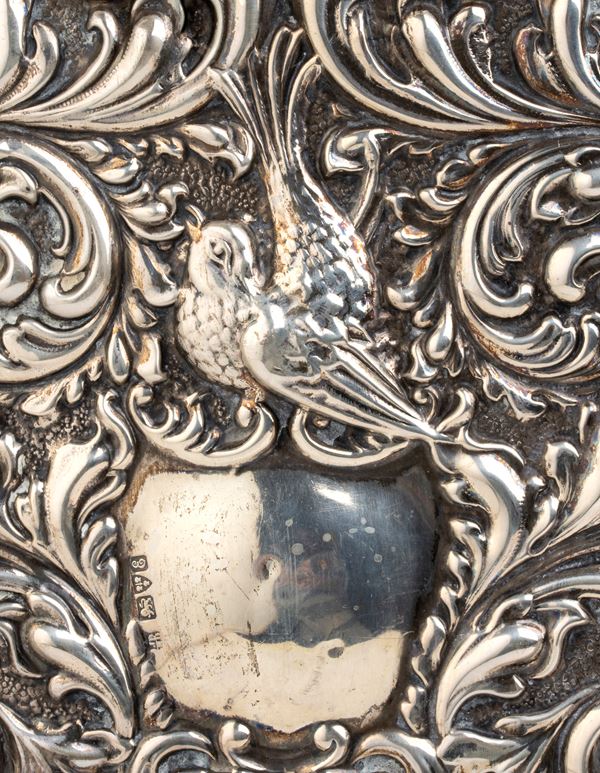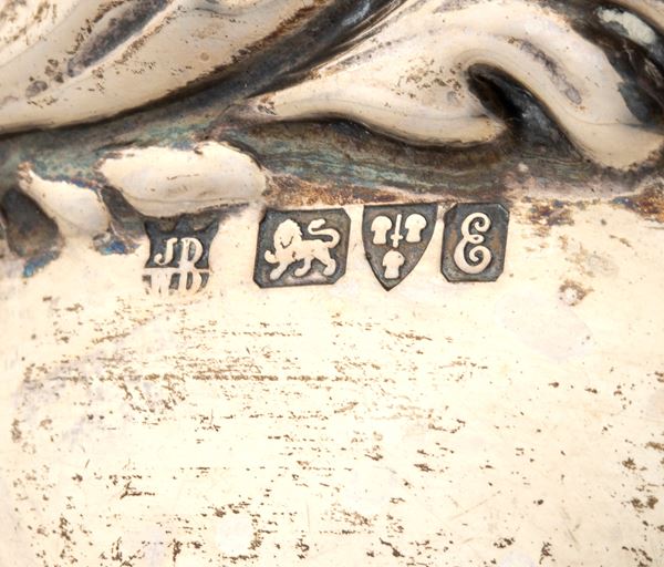 di forma rettangolare con decori a motivi vegetali e animali Argento 925/1000, serie completa di marchi Chester 1905-1906, argentieri James Deakin & Sons (John & William F Deakin).