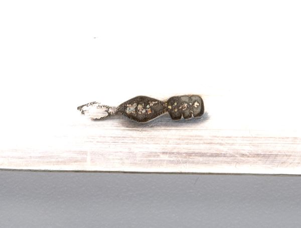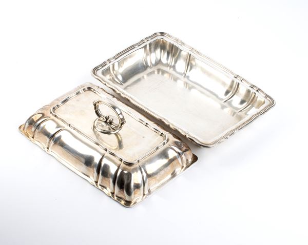 di forma rettangolare con costolature verticali e presa removibile. Argento 800/1000, punzonata "800" e argentiere non identificato.