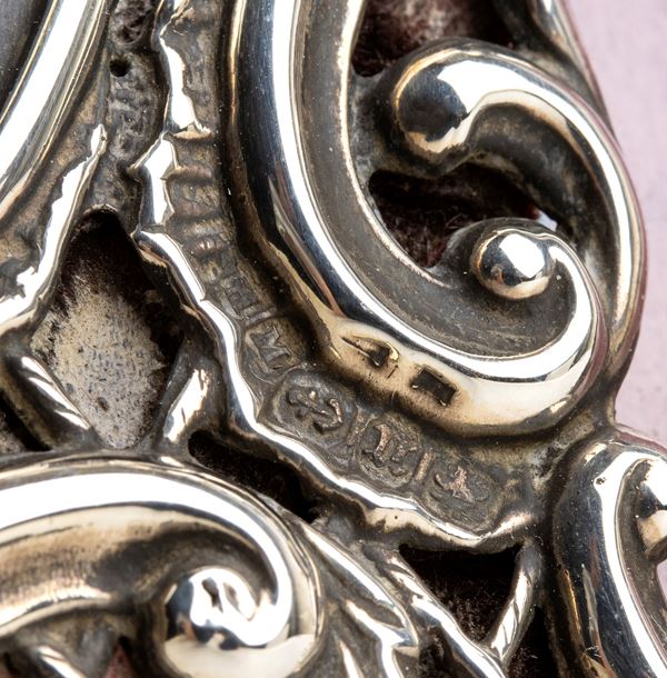 Argento 925/1000, serie completa di marchi Birmingham 1894-1895 e iniziali HM, argentiere Henry Matthews.