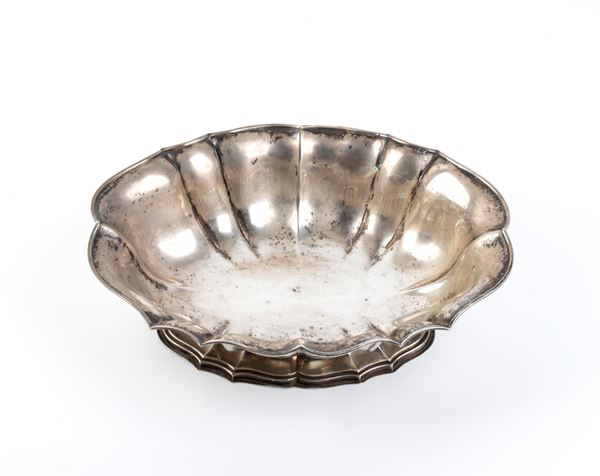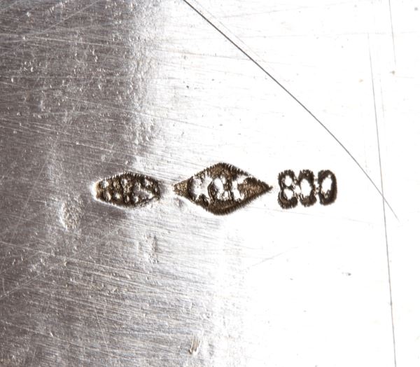 di forma ovale con costolature verticali. Argento 800/1000, punzonato "800 - ReC - 20 marchio del fascio AL", Argentiere Ricci & C. S. p. A.