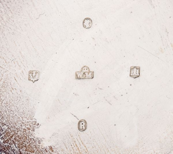 di forma troncoconica inciso con volute fogliate. Argento 925/1000, serie completa di marchi Edinburgo 1873-1874, argentieri William Marshall & Son.