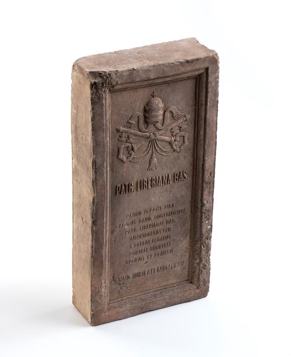Mattonella commemorativa per apertura e chiusura della porta santa di Pio VI. Anno giubilare MCMLXXV.