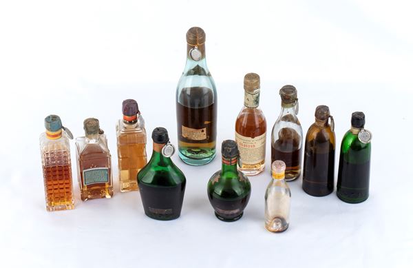 Lotto di 11 bottigliette mignon di liquori, STOCK e affini, da collezione. Seconda metà del XX secolo. Condizioni come da foto