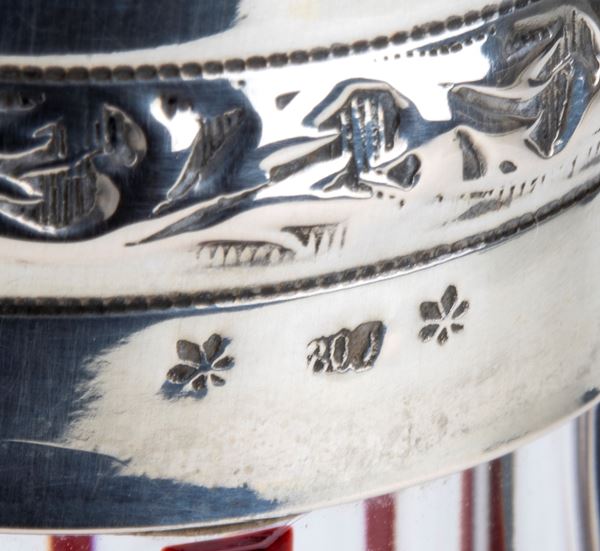 Bottiglia in cristallo di Boemia e argento, Inizio XX secolo
