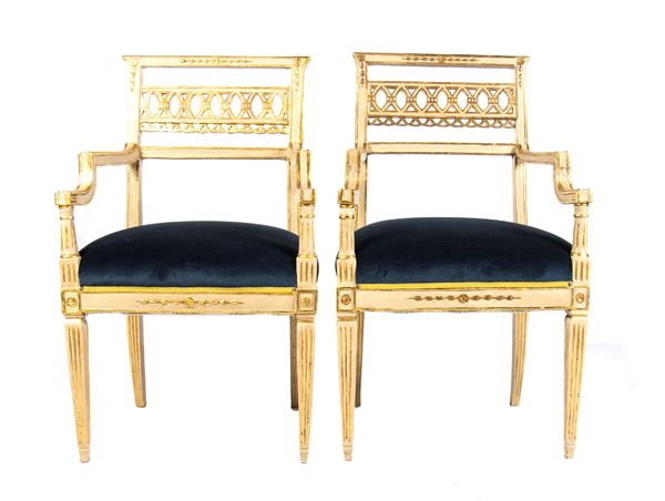 Coppia di poltrone veneziane laccate, Luigi XVI, XVIII secolo