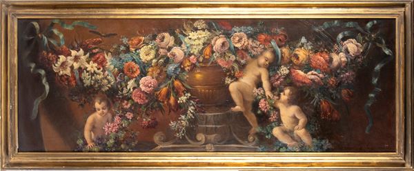 Ghirlanda di fiori e putti, Francia, XIX secolo