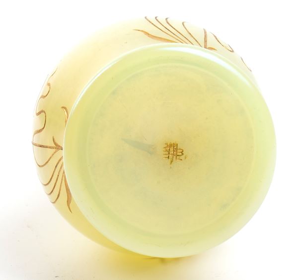 Vaso Austriaco in vetro verde Celadon, monogrammato, Vienna, fine XIX secolo