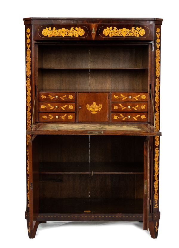 Secretaire olandese in mogano intarsiato, Carlo X, XIX secolo