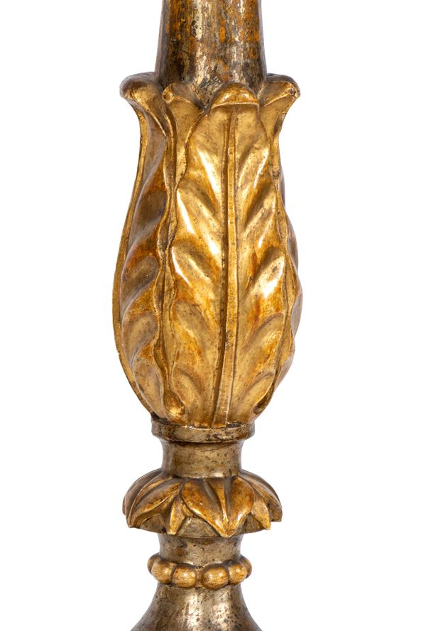 basamento a colonna rastremata e con piedi ferini, parte centrale con forma a foglia di acanto. Il piano superiore già predisposto con un piccolo foro per far passare l'impianto elettrico.