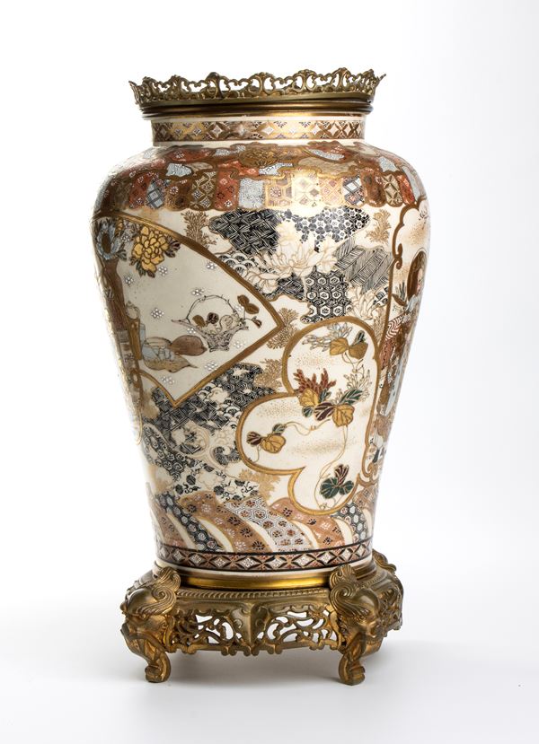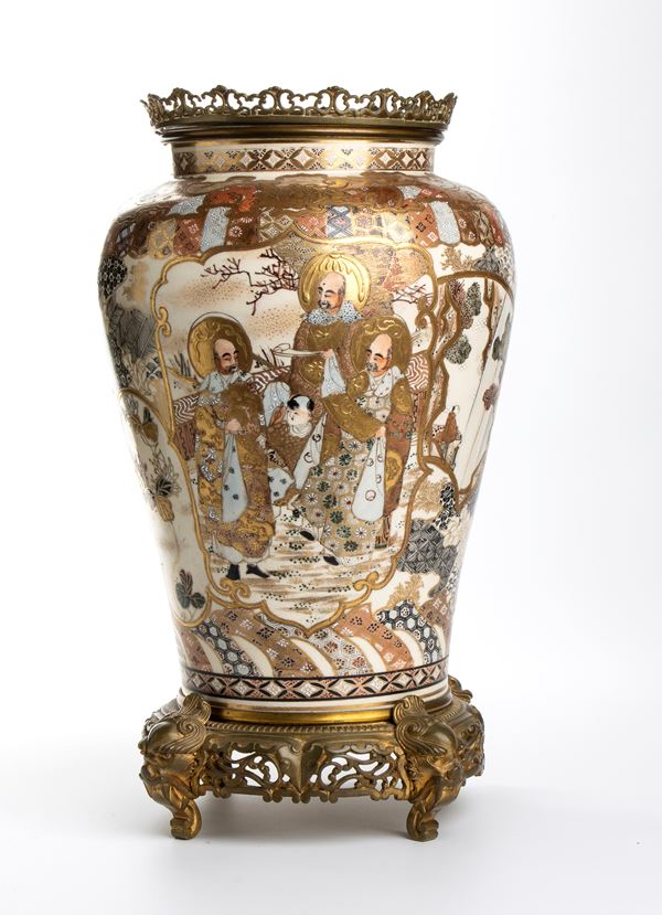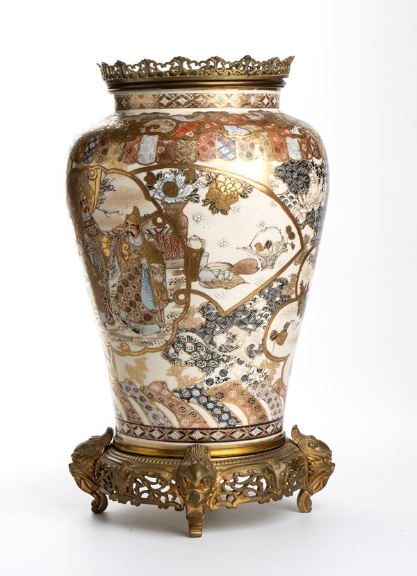 Vaso giapponese Satsuma montato su bronzo francese, Periodo Meiji, 1868-1912