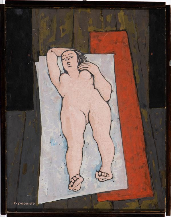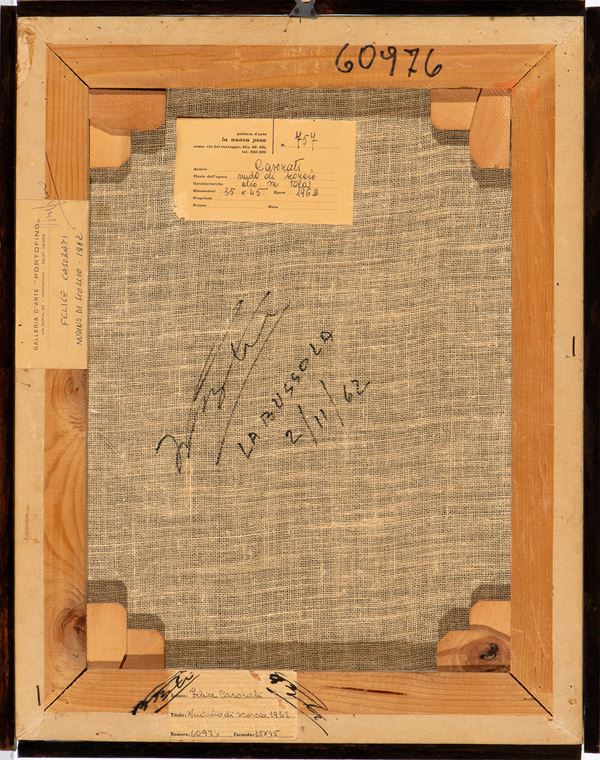 Firmato in basso a sinistra: F. Casorati; al retro iscrizione ed etichetta della galleria La Bussola di Torino, etichetta della galleria La Nuova Pesa di Roma ed etichetta della galleria Portofino di Portofino