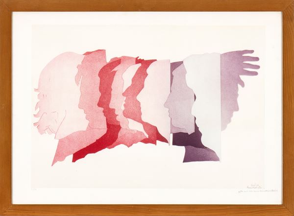 Firma, data e dedica in basso a destra: Ceroli, 69, prova d'autore, tiratura in basso a sinistra: X/XX