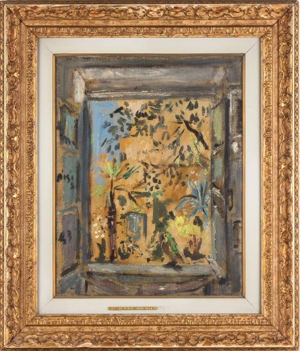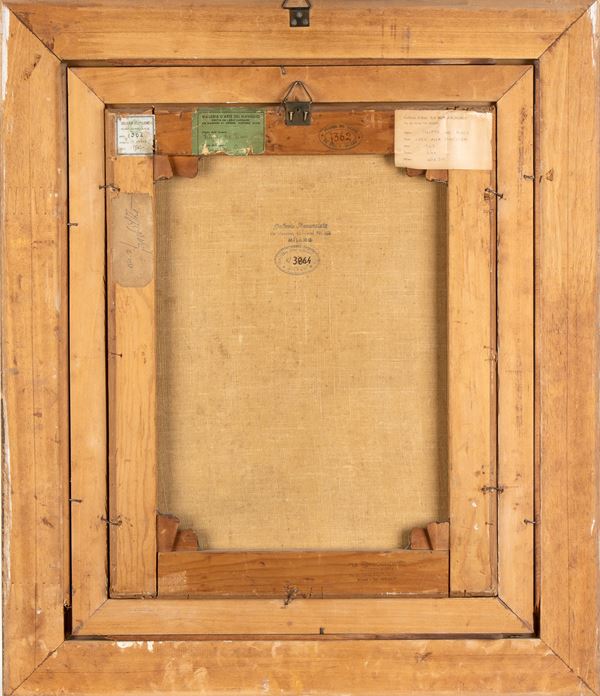 Al retro varie etichette: Galleria del Milione di Milano, Galleria d'arte del Naviglio di Milano e Galleria d'arte La Borgognona di Roma in più timbri della Galleria Annunciata di Milano, della Galleria Borgognona di Roma, della Galleria del Milione di Milano e della Galleria d'arte del Naviglio