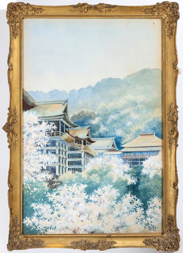 Firmato in basso a destra: E. Kato