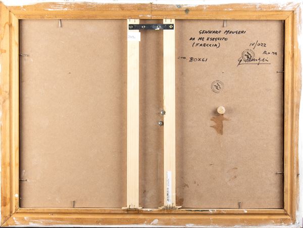 Firma, data, titolo e timbro dell'artista al retro: Gennaro Maugeri, Freccia, IV/022, Roma