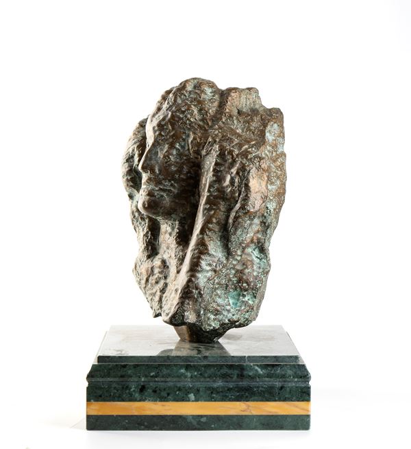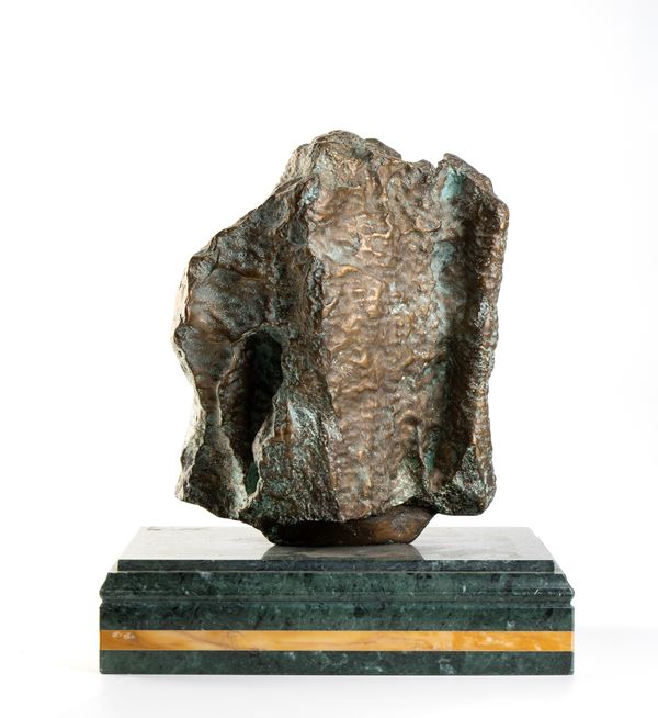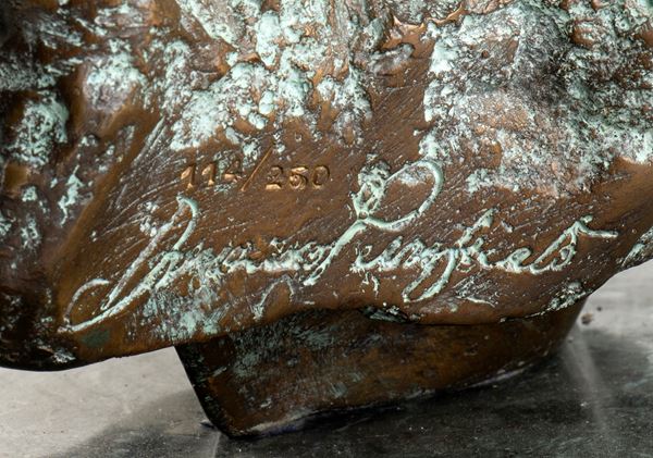 Firma e tiratura incise: Domenico Purificato, 114/250. Realizzata dalla Fonderia Artistica Brustolin con la tecnica della fusione a cera persa. Base in marmo verde Guatemala con filettatura in giallo Siena progettata dagli architetti E. Parodi, M. Cestola e realizzata dal laboratorio artigianale Giovannozzi.