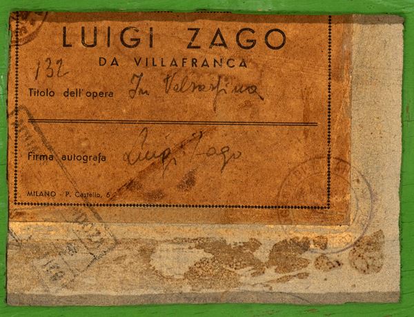 Firmato in basso a destra: Luigi Zago, al retro cartiglio con vari timbri