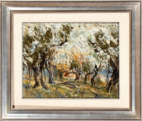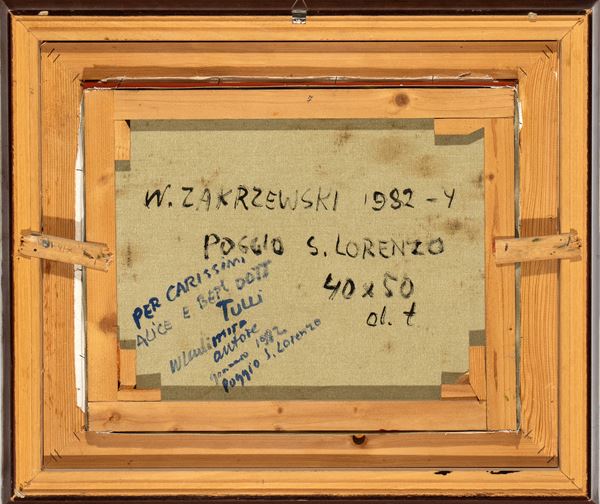 Firmato e datato in basso e a destra: W. Zakrzewski, 1982; firmato, datato e titolato al retro: W. Zakrzewski, 1982, Poggio S. Lorenzo e dedica datata 1982