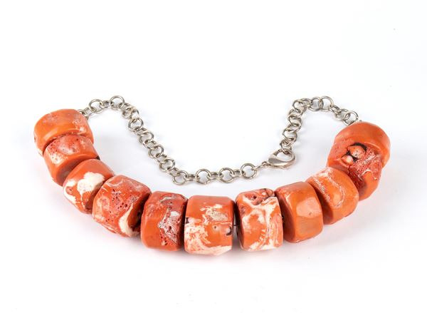 COLLANA IN CORALLO E SCATOLA CIRCOLARE IN LEGNO LACCATO