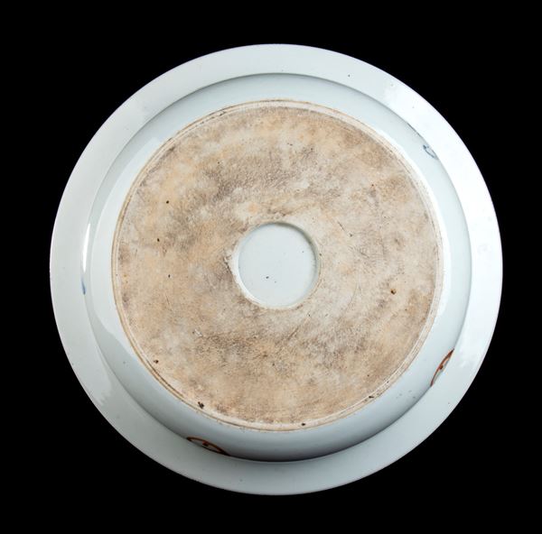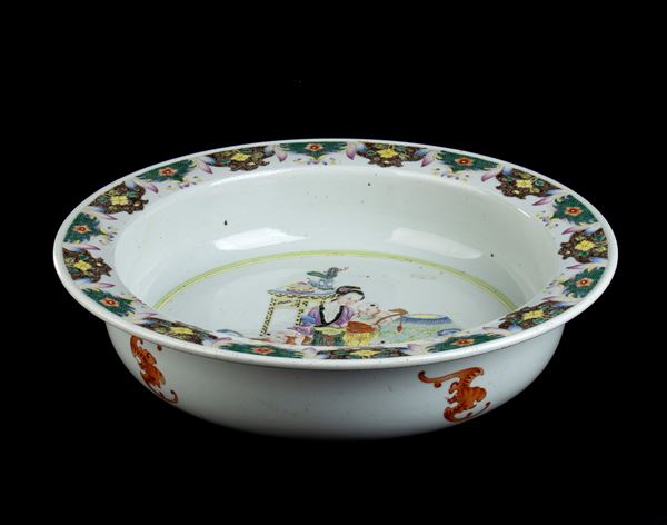 GRANDE BACILE IN PORCELLANA CON DECORO A SMALTI POLICROMI
