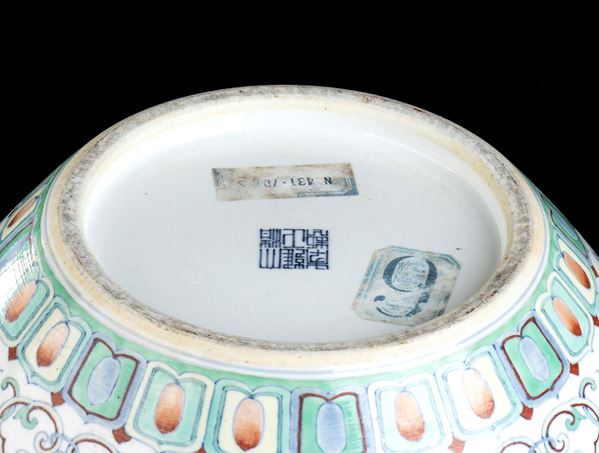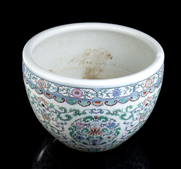 GRANDE CACHEPOT IN PORCELLANA CON DECORO A SMALTI POLICROMI