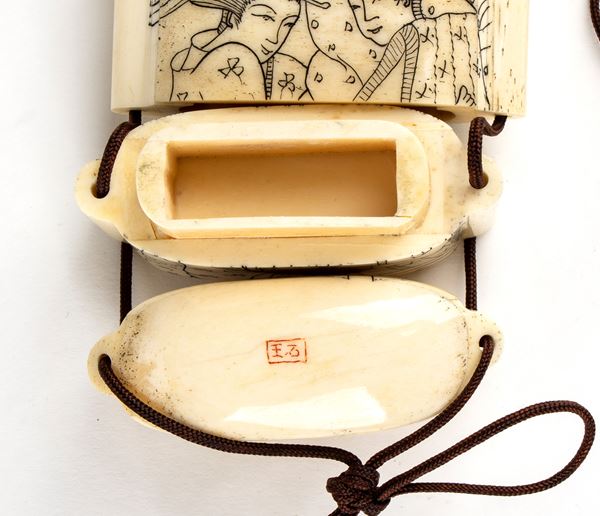 INRŌ A TRE SCOMPARTI IN OSSO