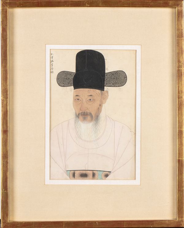 Inchiostro e colori su carta, cornice in legno e vetro protettivo, iscrizione nell'angolo superiore sinistro.