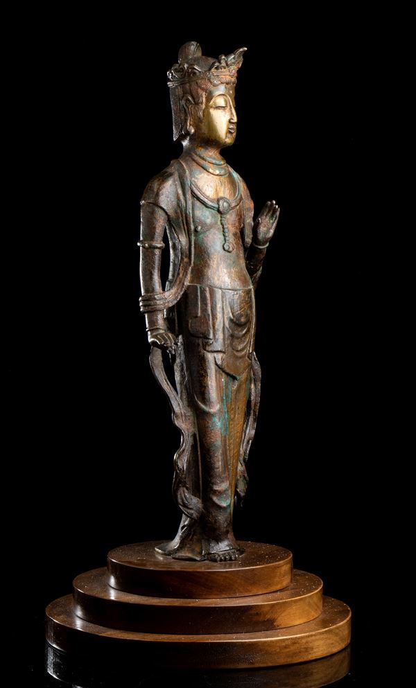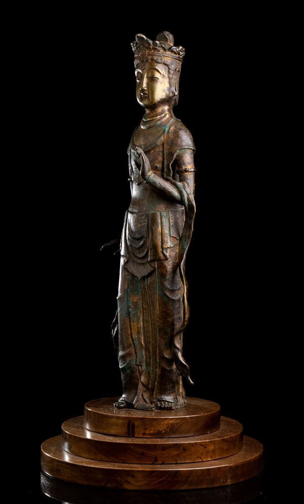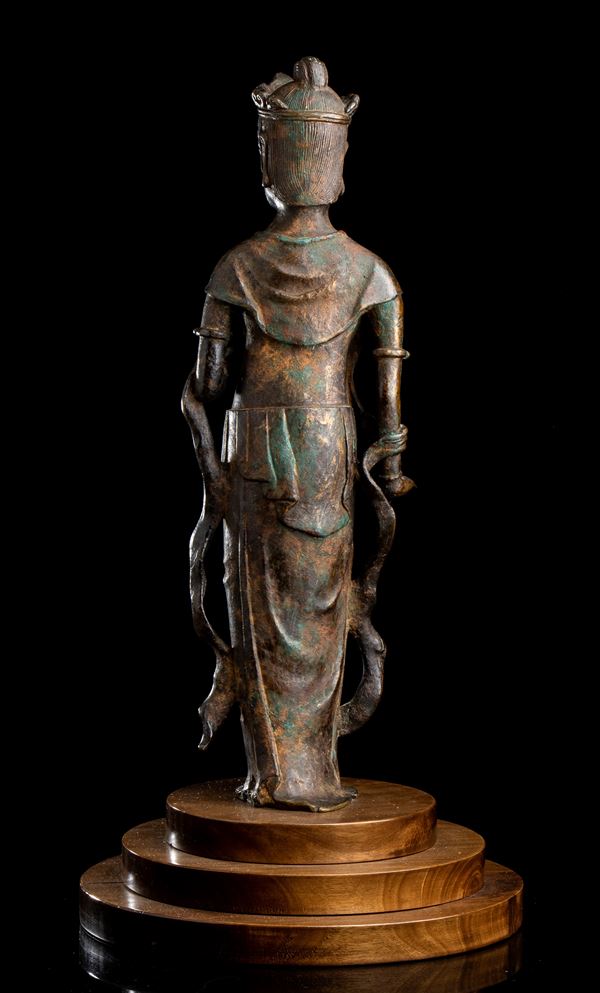 SCULTURA IN BRONZO CON BODHISATTVA STANTE