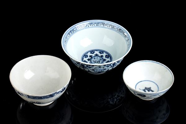 TRE CIOTOLE IN PORCELLANA 'BIANCO E BLU'
