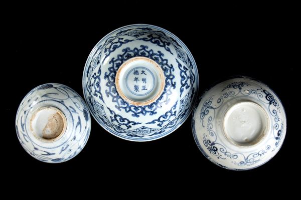 La più grande con iscrizioni in arabo e marchio apocrifo di Zhengde al centro della base.