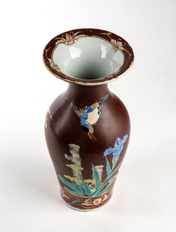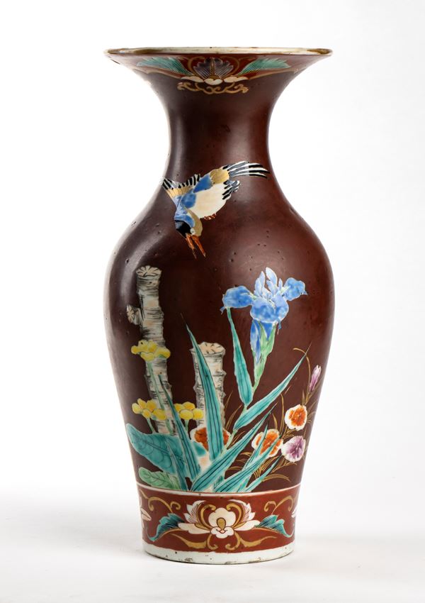 VASO IN PORCELLANA CON DECORO A SMALTI POLICROMI