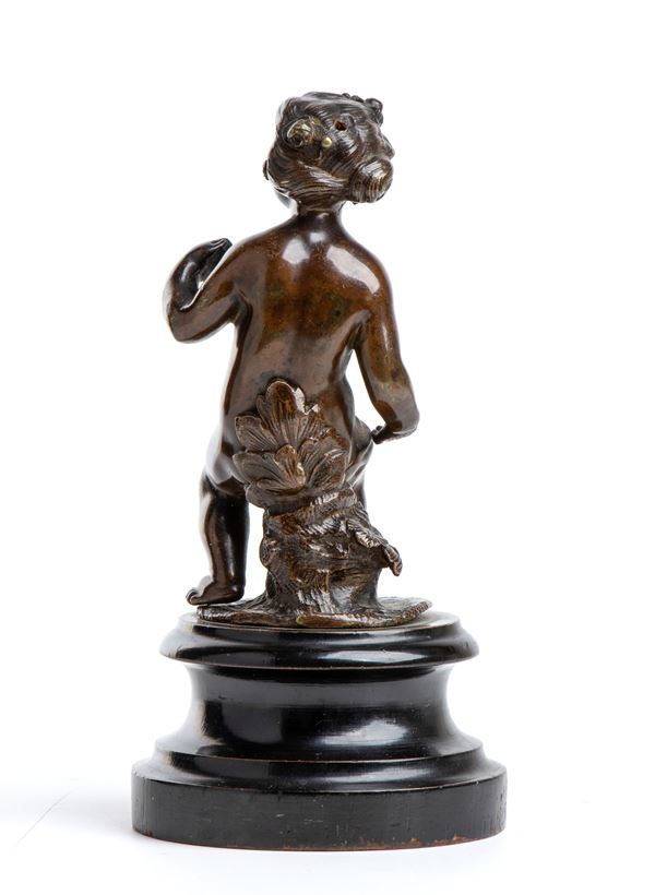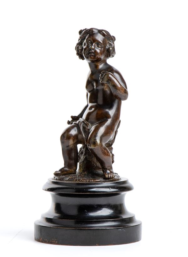 Questa delizioso bronzetto è sicuramente di gusto francese risalente al XIX secolo. Mantiene ancora gli stilemi di certa scultura settecentesca, che in Francia si protrarrà per tutto il corso del secolo successivo.