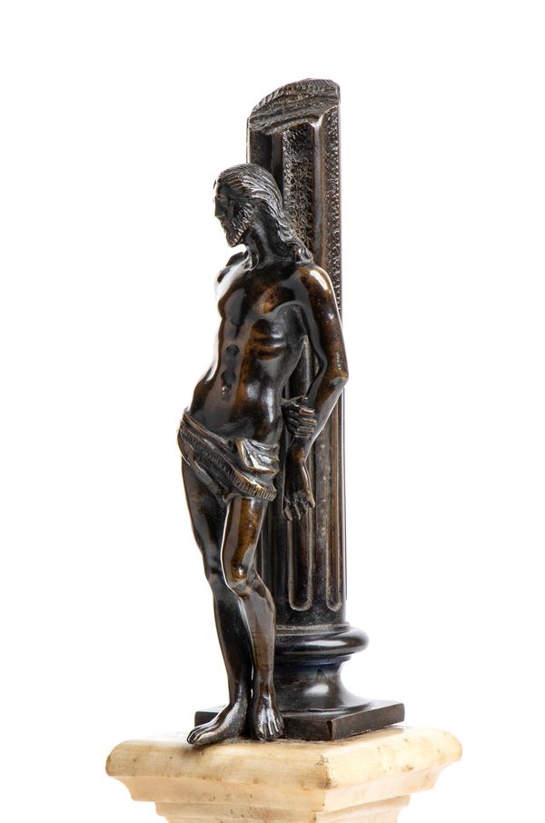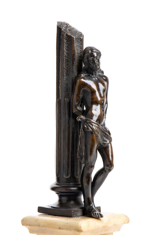 Il modello di questo interessante "Cristo alla Colonna" va sicuramente ascritto all'ambito del grande scultore rinascimentale Guglielmo della Porta, e infatti risulta essere identico a quello del Walters House Museum, dove viene schedato "dal modello di Guglielmo della Porta". Allo stesso tempo il bronzo è molto simile al modello appartenente alla "Quentin Collection" (pubblicato nel catalogo della mostra tenutasi alla Frick Collection nel 2004-2005 a New York), da cui si differenzia principalmente per l''orientamento dello sguardo (il modello della Quentin Collection guarda alla propria sinistra).