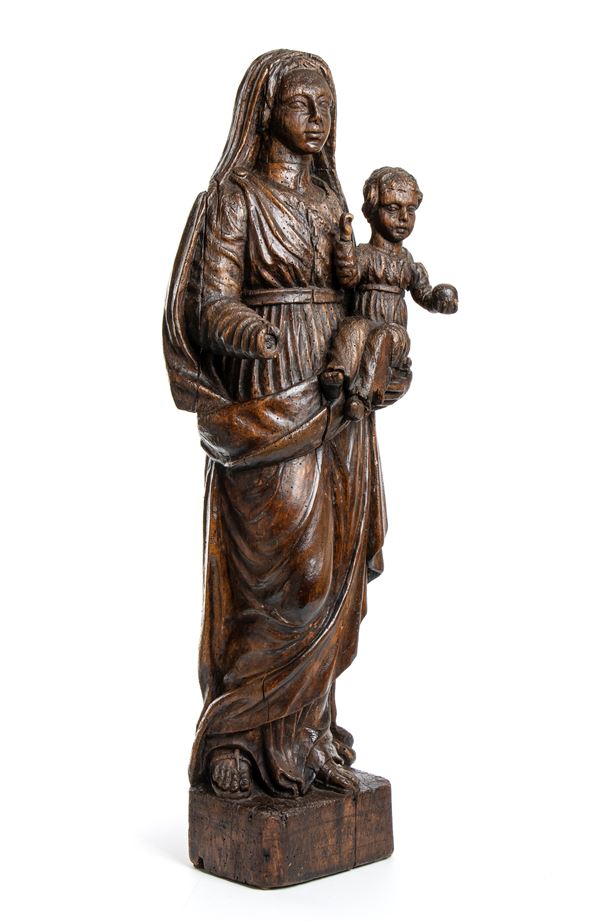Scultura di notevoli dimensioni raffigurante Madonna con bambino collocabile al XVI secolo.
