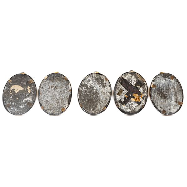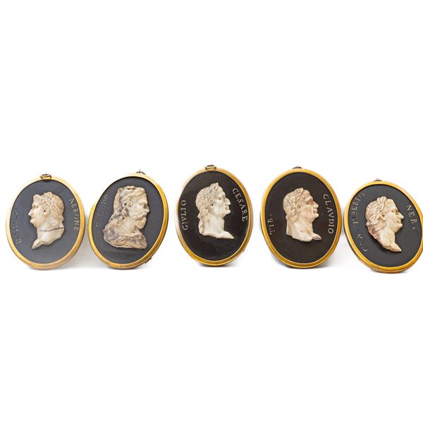 Gruppo di cinque Medaglioni ovali raffiguranti profili di imperatori romani.